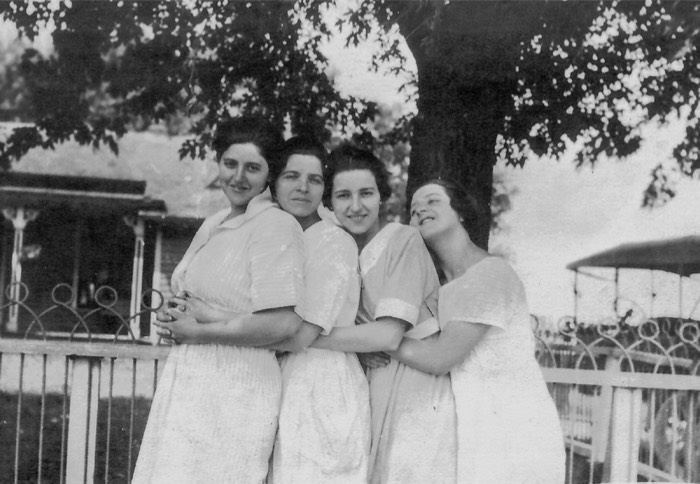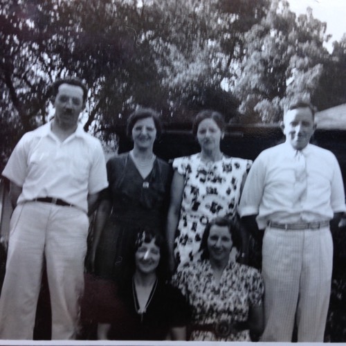 "Ada in front of Maymie and Alta behind me. Glenn's by Ada and Floyd on my side. (Laura) Burl is not in photo" Think Laura, being youngest of sisters is the one on bottom left. Glenn is on right?